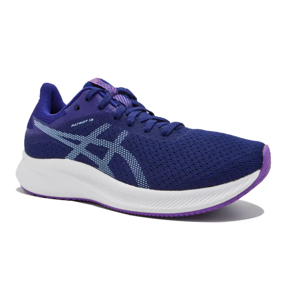 Relookée, la chaussure Asics Patriot 13 pour homme possède des atouts indispensables au bon déroulement de vos sessions de course à pied.